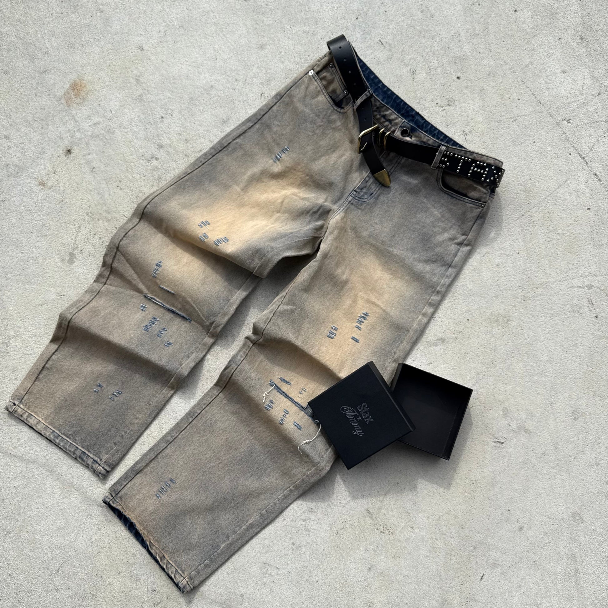 Stax Baggy Denim Pants. Acid wash light distressing.